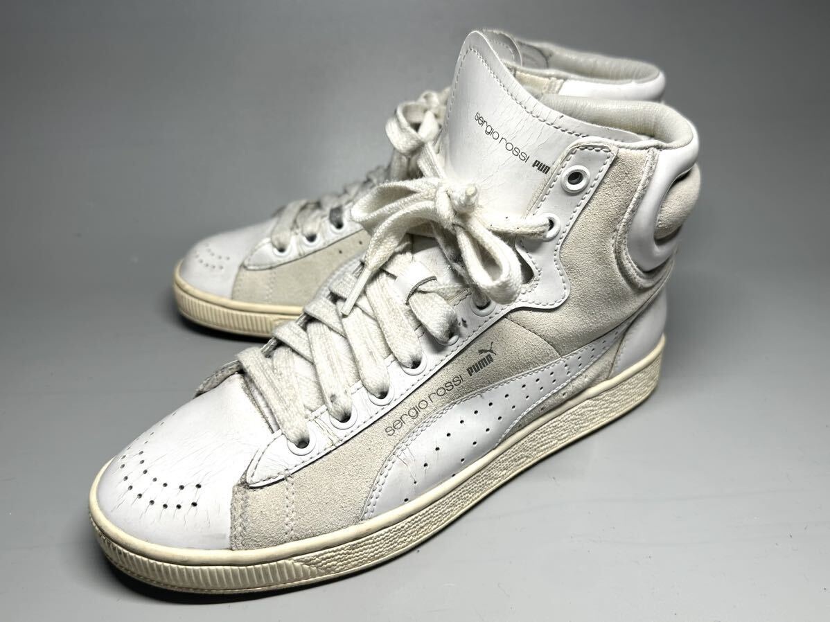 - 【即決】Sergio Rossi PUMA セルジオロッシ メンズ 24cm レディース 25cm レザー コラボ ハイカットスニーカー 白 ホワイト 靴 くつ