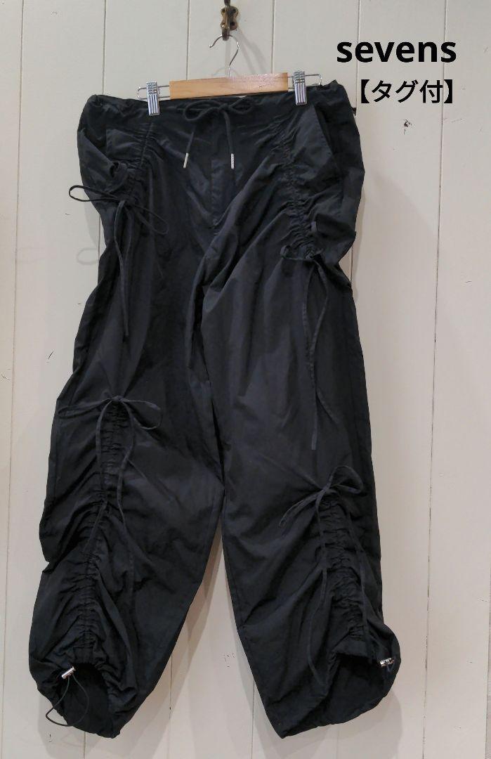 - sevens 【タグ付き】 シャーリング カーゴパンツ ブラック レディース