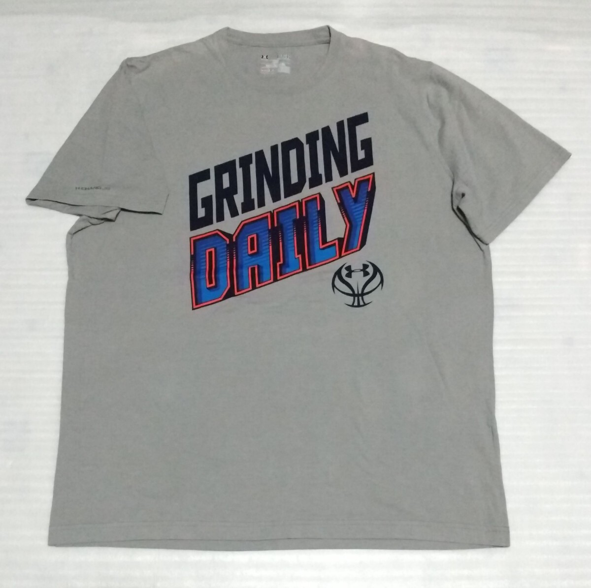 - ☆UNDER ARMOUR 半袖Tシャツ XLサイズ スポーツCHARGED LOOSEティー HEATGEARフアッションTEE グレイGLAY アンダーアーマー GRINDING DAILY