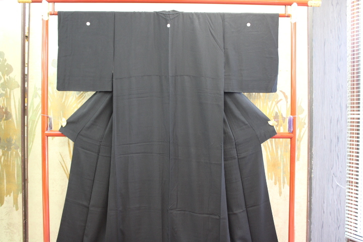 > きもの今昔7397 黒の礼装 喪服袷きもの 正絹一越地 胴裏は真っ白綺麗 家紋「輪寶」 身丈155CM