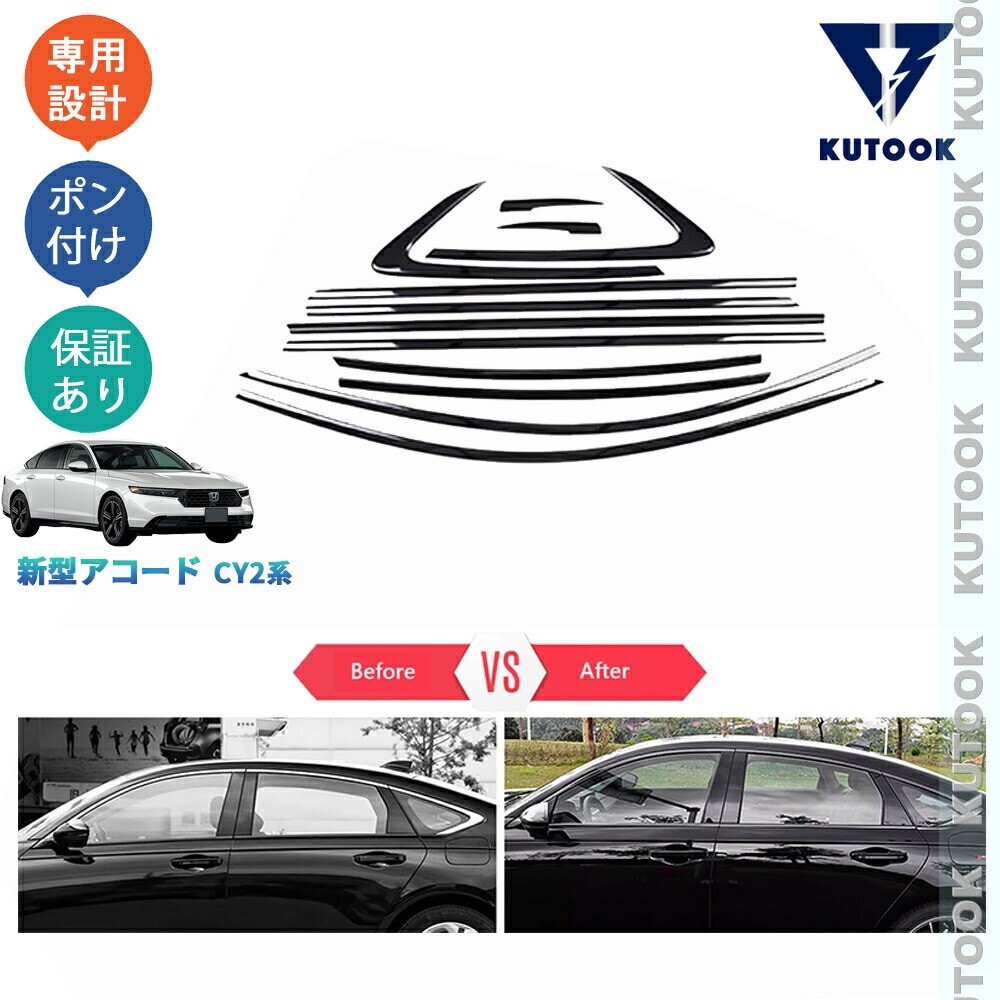 - 新型アコード アコードe:HEV CY2 外装 アクセサリー パーツ 鏡面ブラックサイドウインドウモール ドア差しモールpda-nyg-056