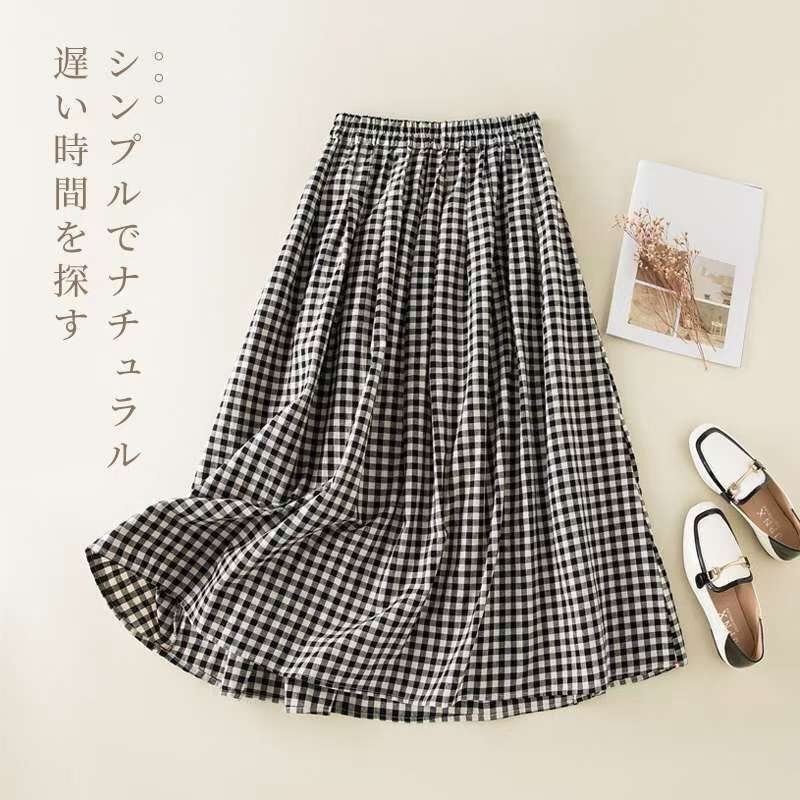 - LRM2695★新品ギンガムチェックがかわいい 大きいサイズ☆ ウエストゴムのマキシ丈スカートコットン風