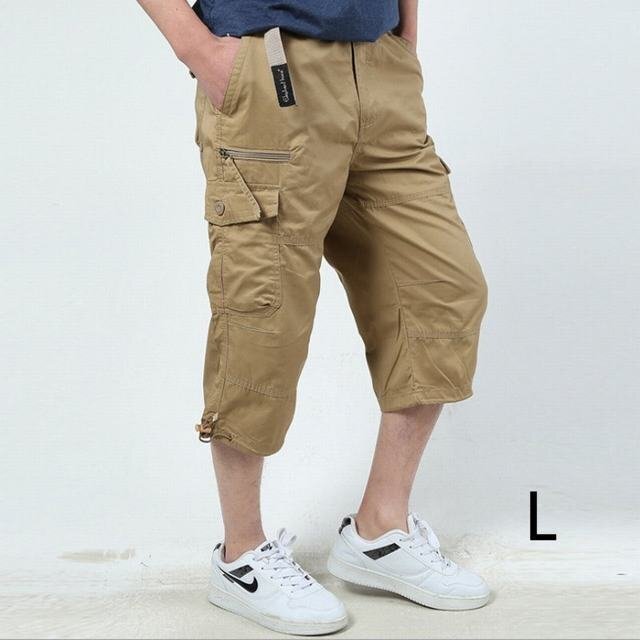 - カーゴパンツ メンズ 7分丈 夏 スポーツ クロップドパンツ ストレッチ カジュアル ?ショートパンツ ジャージ?カーキ L