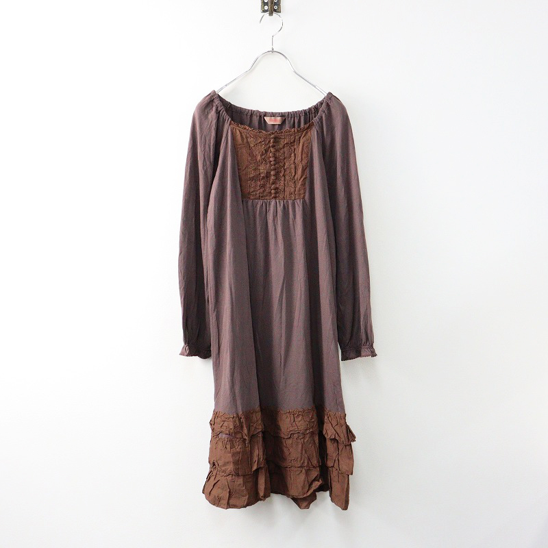 > ピンクハウス PINK HOUSE ピコフリルローン切替カットソーチュニック/ブラウン フレア 段々 ワンピース ドレス【2400014013061】