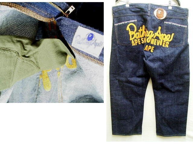 > ◇即決[XXL]美品 APE チャンピオンデニム 大戦モデル WW2 WWII ワッペン 刺繍 セルビッチ 赤耳 001DP0301001X 濃紺 パンツ■3054