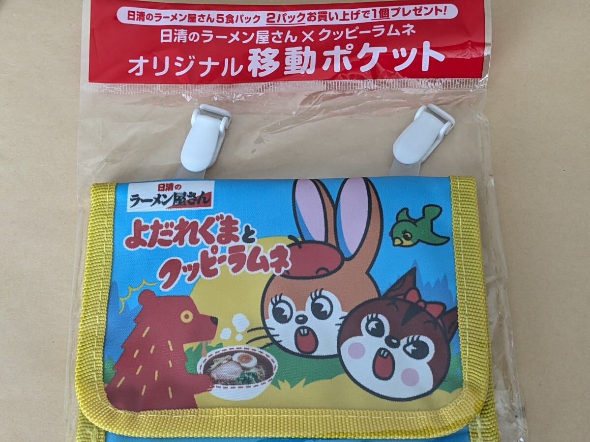 - 非売品 日清のラーメン屋さん クッピーラムネ オリジナル移動ポケット よだれぐまとクッピーラムネ ポーチ 小物入れ