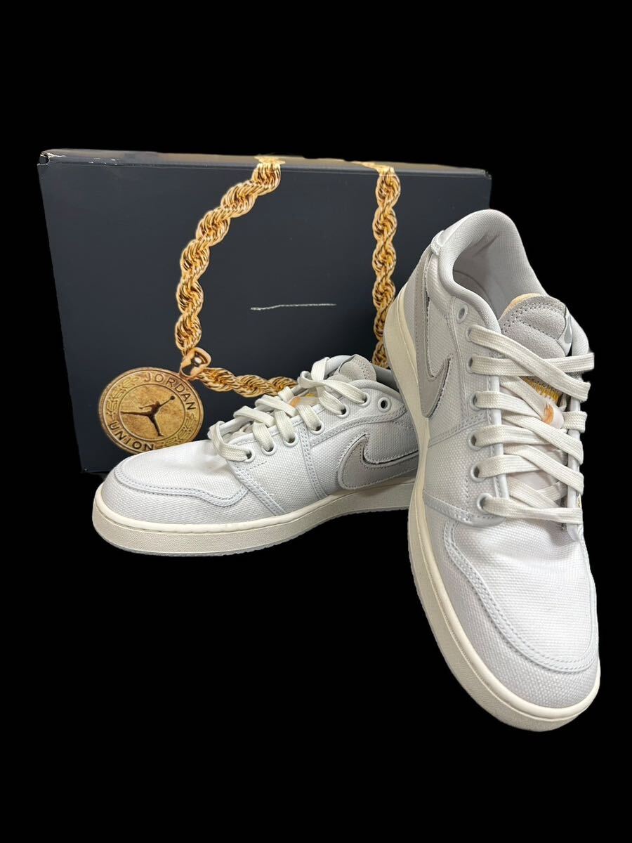 > A10606 使用1回 NIKE UNION NIKE AIR JORDAN 1 KO LOW AJKO White Canvas エアジョーダン1 ノックアウト ロー ユニオンDO8912-101 27.0cm