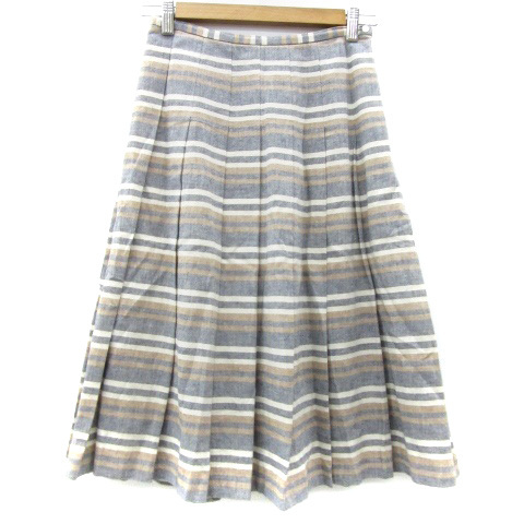 > ハリス HARRISS プリーツスカート ミモレ丈 ボーダー柄 麻 リネン混 36 S グレー ブラウン 茶 /YM39 レディース