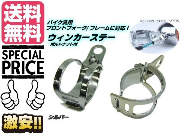 > バイク用 汎用 ウィンカーステー ブラケット φ30〜36mm対応 シルバーメッキ フォーク クランプ ウインカ メール便 送料無料/4