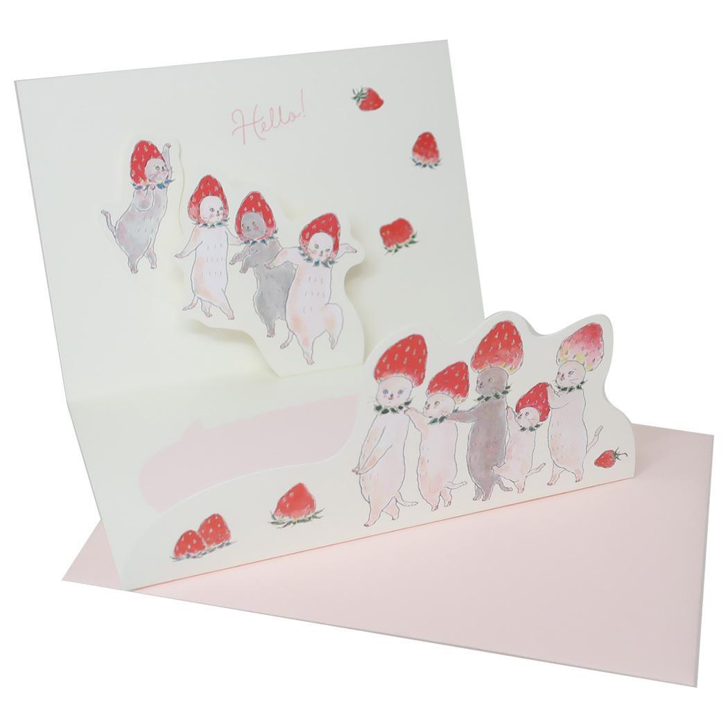 - グリーティングカード トコロコムギ ポップアップカード 多目的カード いちご フォーユー メッセージカード 封筒付き かわいい