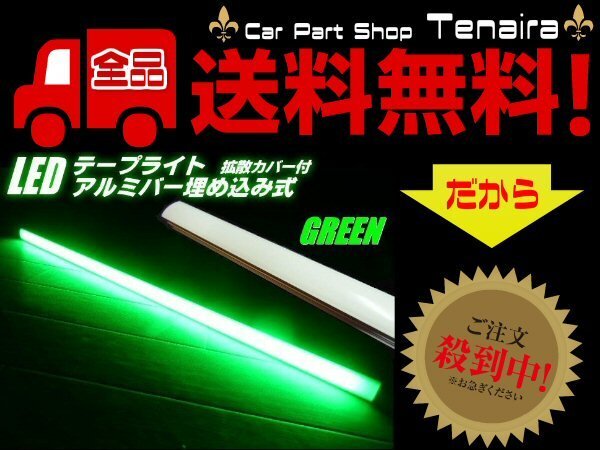 - 船舶・トラックの作業灯に!24v/拡散カバー付アルミバー埋め込みLEDテープライト・蛍光灯/緑色・グリーン 送料無料/5