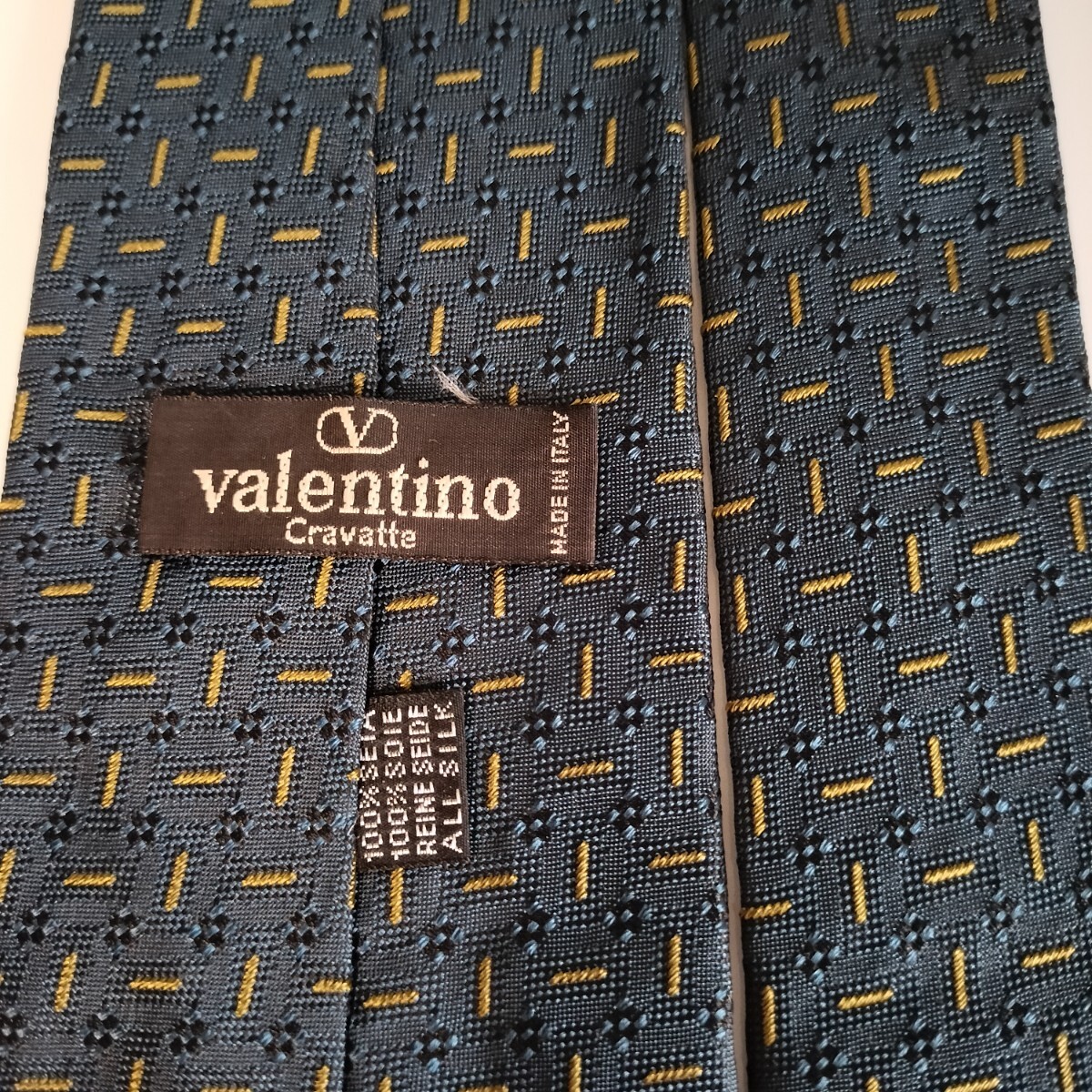- VALENTINO(ヴァレンティノ)紺緑ゴールド線ワンポイントロゴネクタイ
