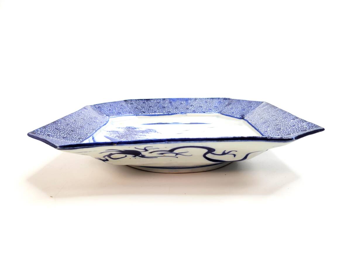 - 【送料無料・蔵出し品】 明治時代 染付印判 人物 鳳凰龍紋 山水