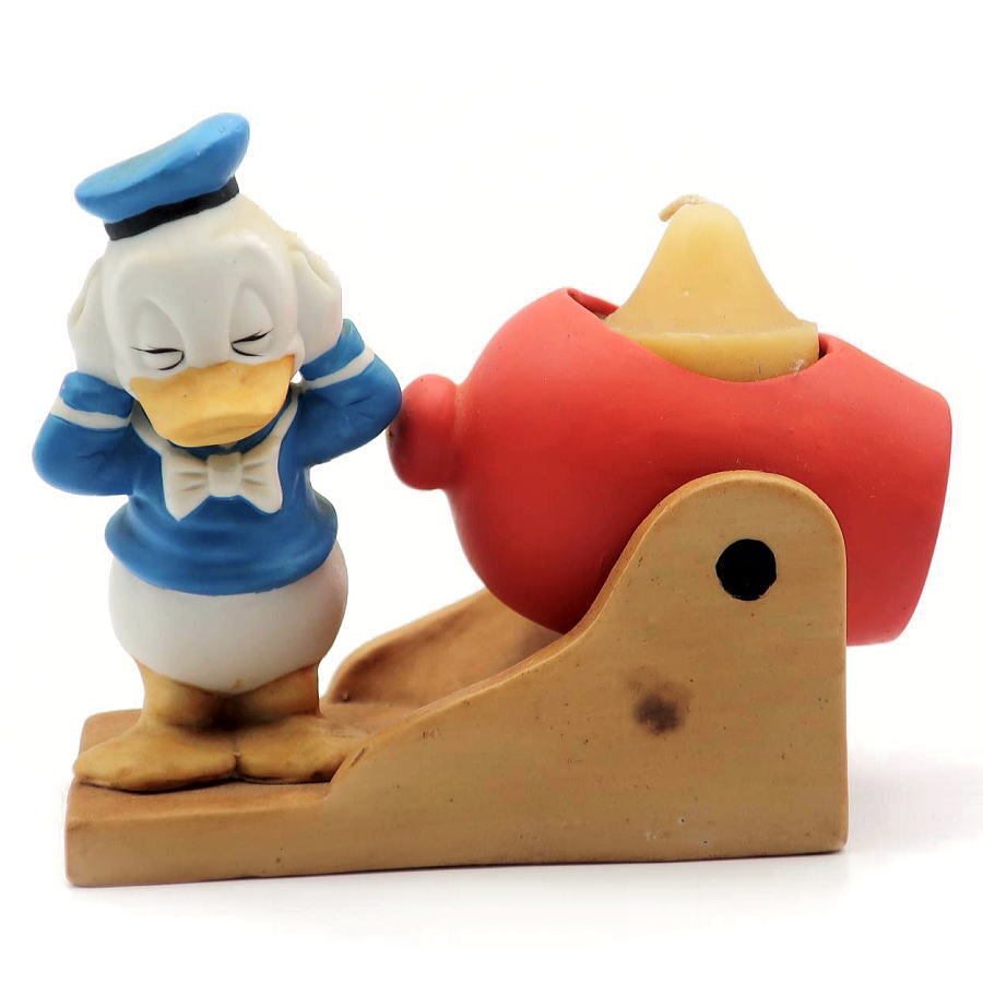 - ディズニー ドナルド ビスク・キャンドルホルダー 大砲 Royal Orleans社 1970年代~1980年代前半 ろうそく付