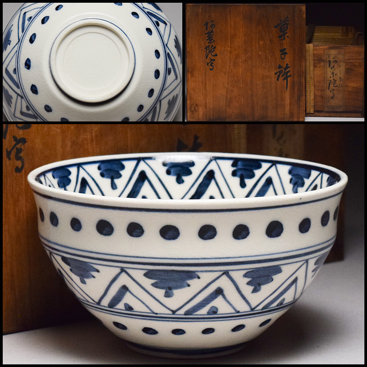 > 【八八八】阿蘭陀 写 オランダ 紅毛 染付 菓子鉢 ◆箱付 茶道具 和蘭 【w-113】