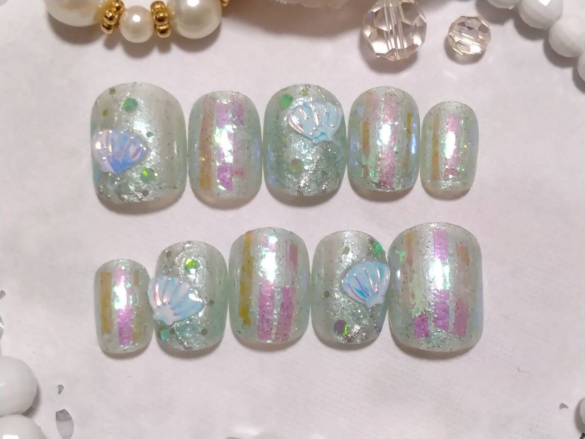- 即決☆ジェル加工済ネイルチップ☆ベリーショートM サイダー シェル 氷ネイル