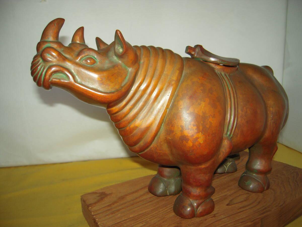 - 【アンティーク】犀尊 銅製 約7kg サイの置物 全長約35㎝ 重量感あり
