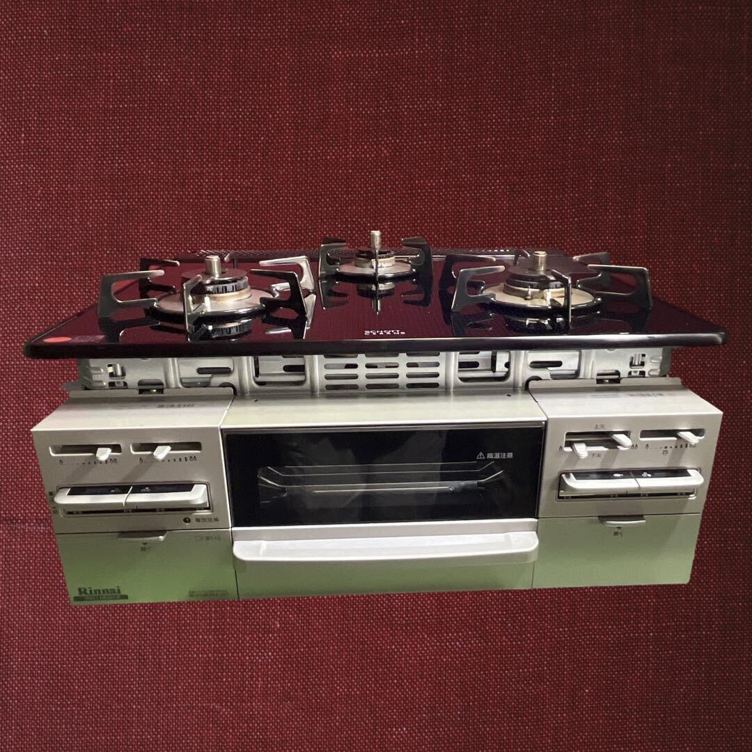 - (中古品)リンナイ グリル付三口ガスビルトインコンロ RB31AW8B1R-VL、都市ガス、2013年製。