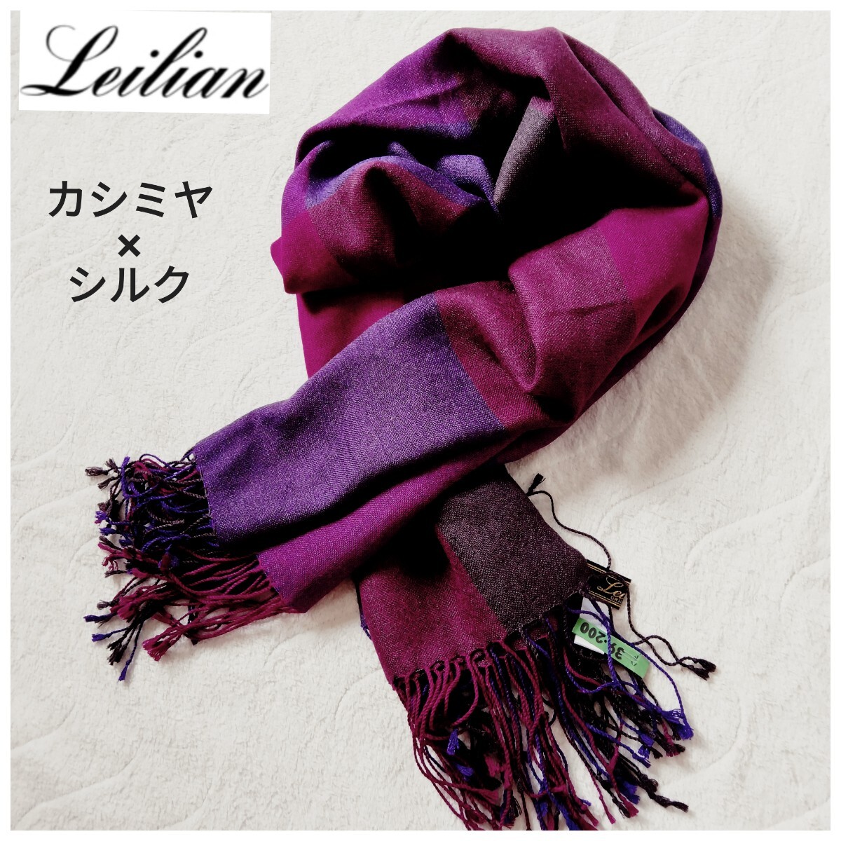 - レリアン*Leilian*クリーニング済*シルク×カシミヤ*大判ストール*紫系*パープル*正方形*スカーフ*絹*フリンジ*ショール