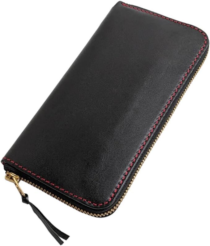 - 箱無しで激安 栃木レザー ラウンドウォレット 長財布 メンズ レディース 日本製 YKK 本革 牛革 ブラック 通勤