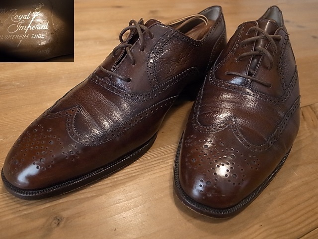 - イタリア製 FLORSHEIM フローシャイム Royal Imperial ロイヤルインぺリアル 革靴 茶 ビンテージ ウィングチップ レザーシューズ 8D 約26㎝