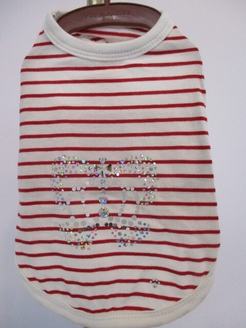 - DOG CAT 犬 猫 ペット 服 綿 ラメ スパンコール クリスタル ボーダー 白 赤 柄: 蝶 バタフライ オリジナル 限定 新品 未使用 サイズ: 2号16