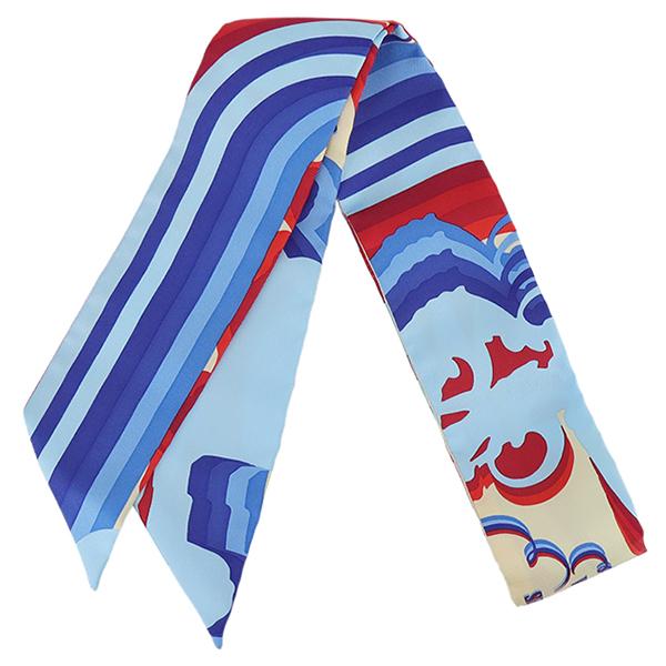 - エルメス ツイリー ブリッドドゥガラシャドー ブルー レッド クレーム h-g727