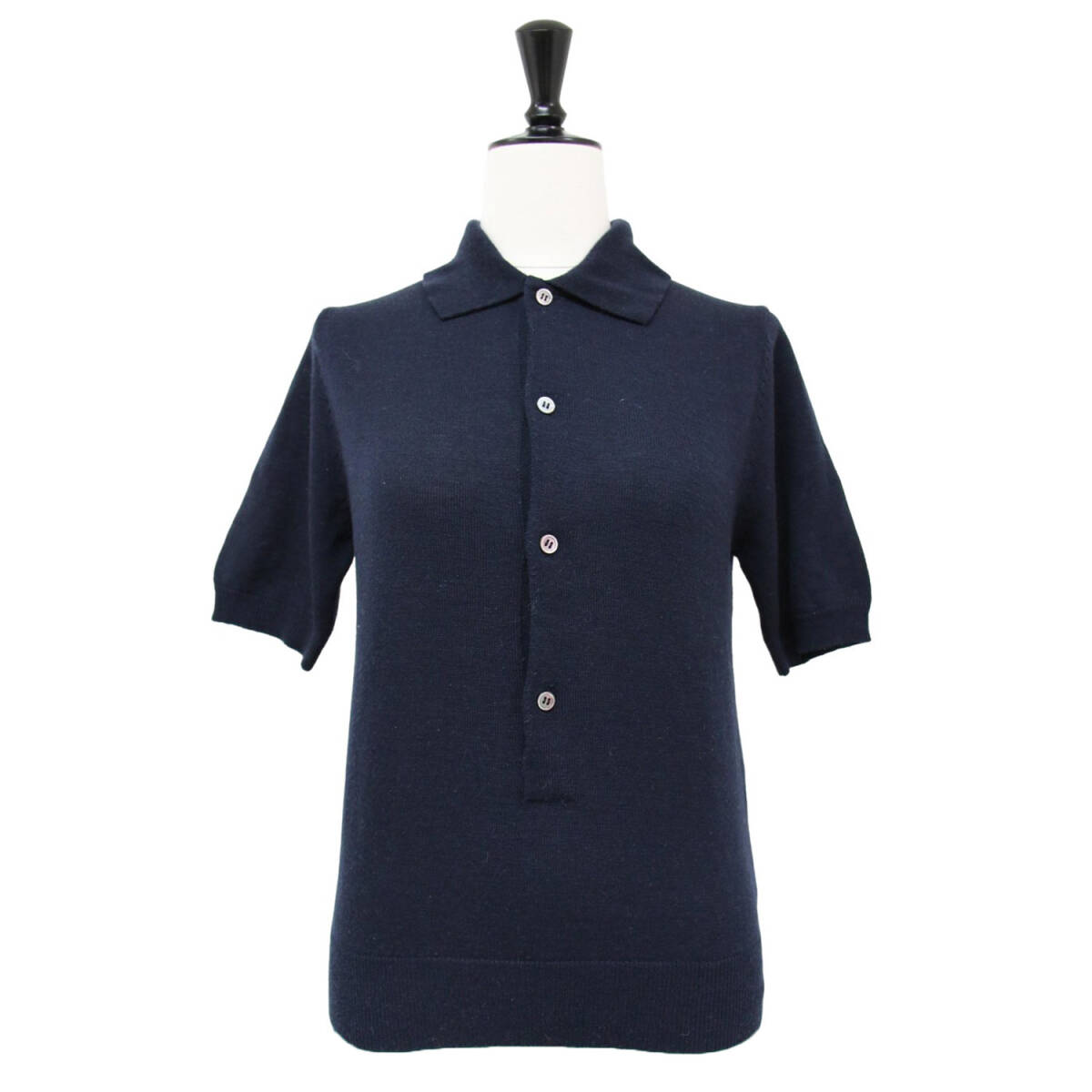 - robe de chambre COMME des GARCONS ローブドシャンブル コムデギャルソン ニット ネイビー サイズ:FREE 襟付き 半袖 ウール ポロニット