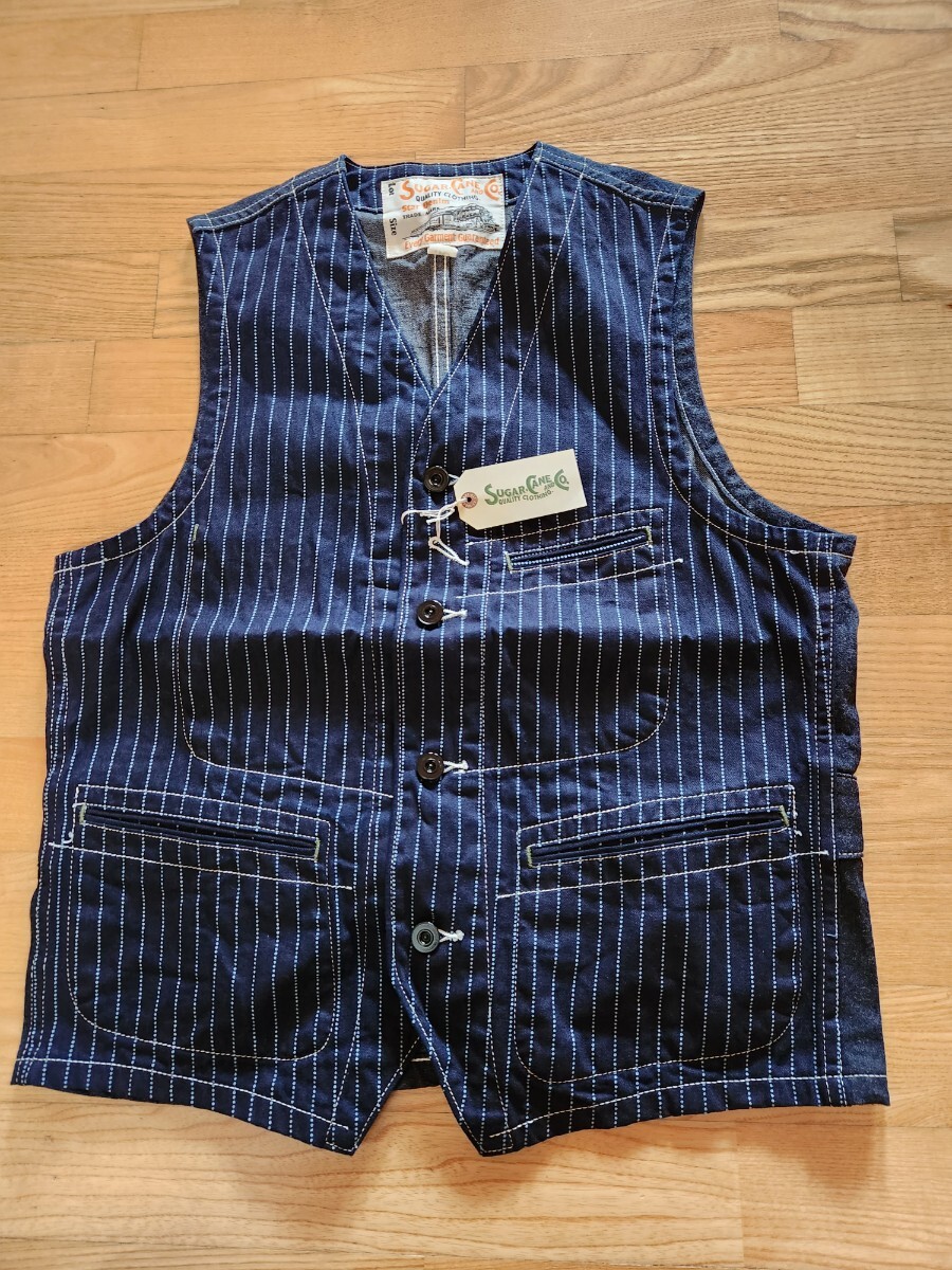 - 新作 送料込★東洋 SUGAR CANE シュガーケーン SC12654 9oz WABASH STRIPE WORK VEST ウォバッシュストライプワークベスト ネイビー 40