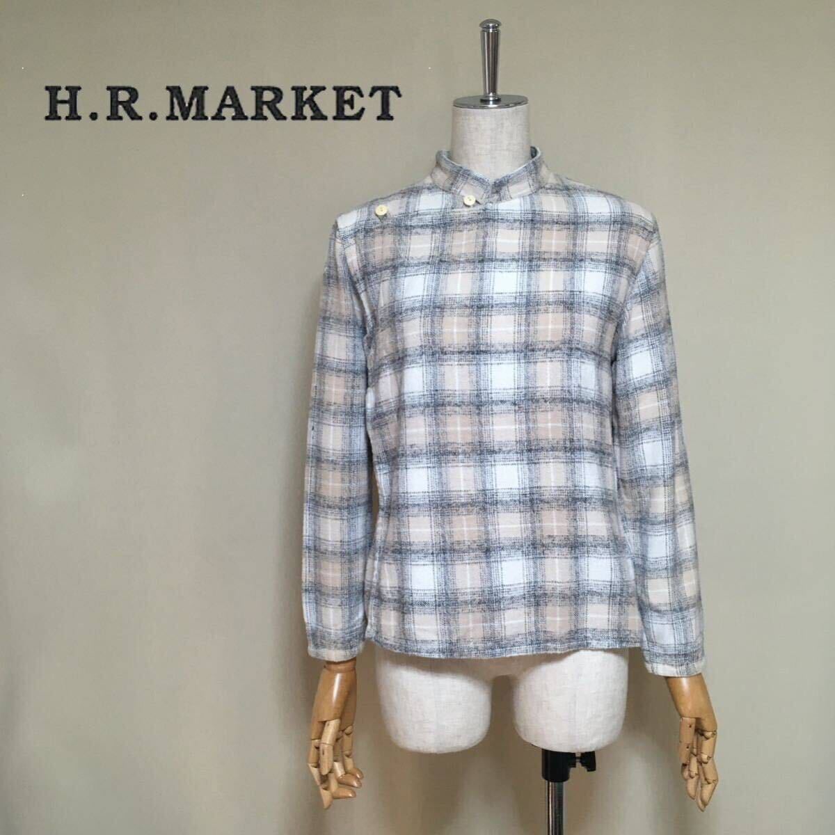 > 【ヴィンテージ古着】H.RANCH MARKETハリウッドランチマーケット インド綿 チェック柄 ネルシャツ スタンドカラー レディース フリーサイズ