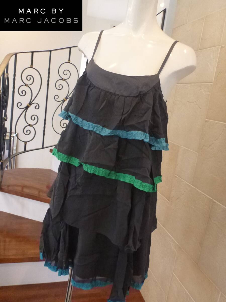 - 新品 Marc by Marc Jacobs(マークバイマークジェイコブス)グレー×緑 フリル シルク キャミソールワンピース S相当 2