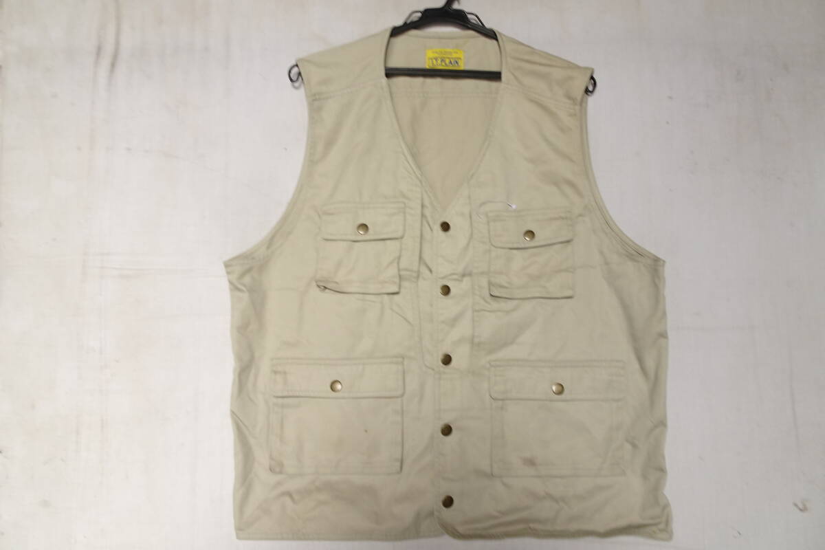 - I.T.PLAIN/作業着ベスト/綾織り素材/Vネック/前スナップボタン/フラップポケット/ワークウェア/ベージュ系カーキ/LLサイズ(8/27R)