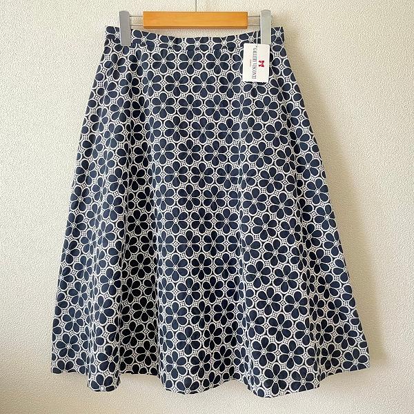> #anc ギャラリービスコンティ GALLERYVISCONTI スカート 2 紺 白 花 刺繍 タグ付き 美品 レディース [899756]