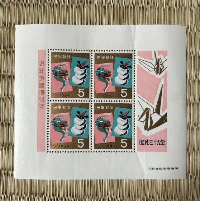 - 年賀切手 昭和39年 1964 お年玉切手シート 郵便切手 竜神と辰 573
