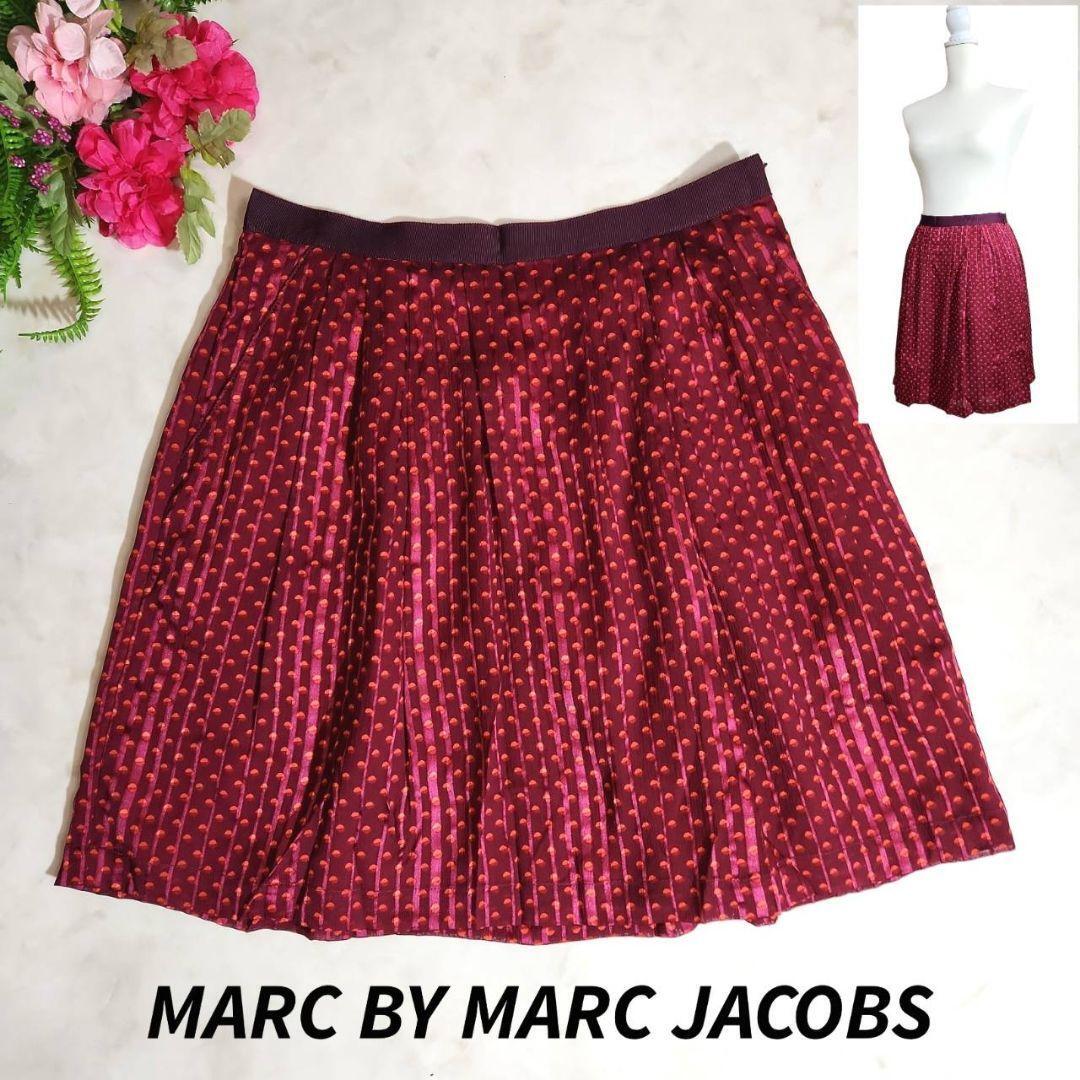 - MARC JACOBS 絹シルク100% 総柄ミニスカート 赤&オレンジ8288