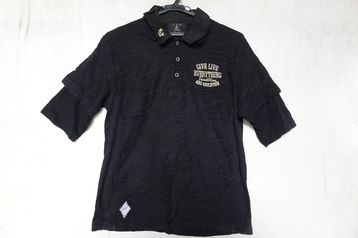 - CBS/襟付半袖シャツ/レイヤード/重ね着風/身頃脇リブ素材切替/凹凸感のある生地/文字ロゴししゅう/黒/ブラック/Lサイズ(8/29R)