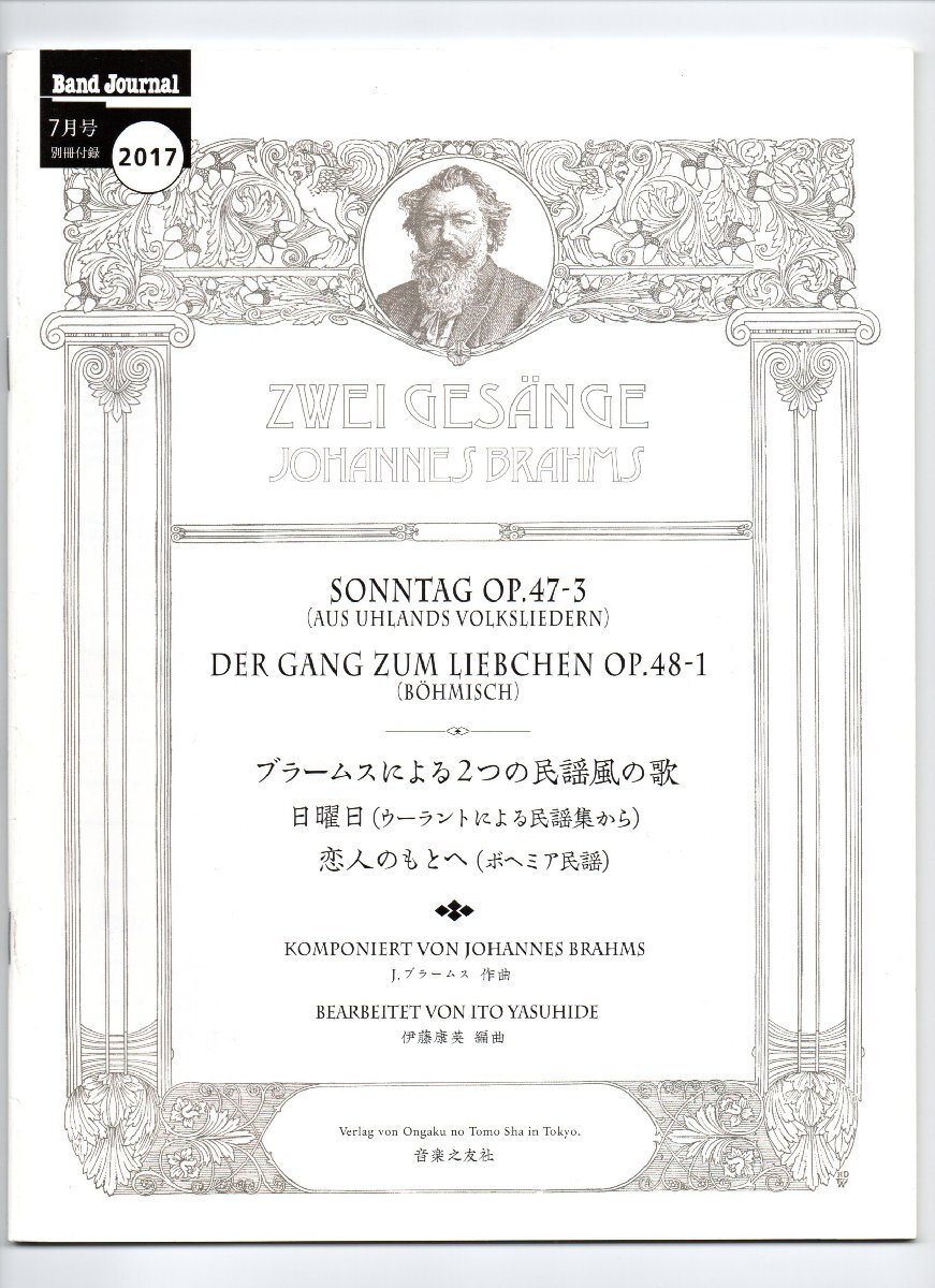 - 送料無料 吹奏楽楽譜 ブラームス:ブラームスによる2つの民謡風の歌 日曜日 恋人のもとへ 伊藤康英編 試聴可 スコア・パート譜