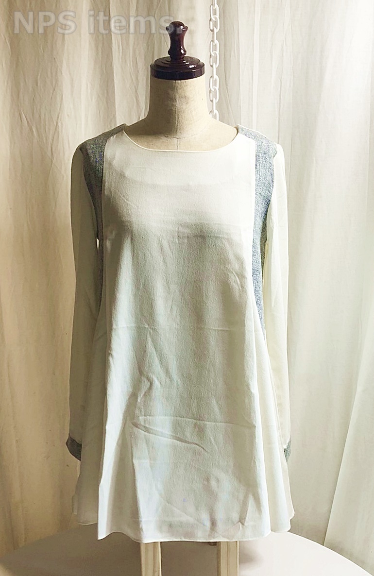 - 送料無料♪トップス チュニック サラサラ生地 ツイードポイントデザイン Mサイズ ホワイト