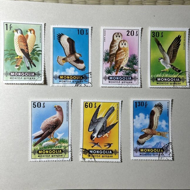 - 切手 モンゴル切手 1970年 鳥 ヨーロッパノスリ モリフクロウ 7種 切手 573