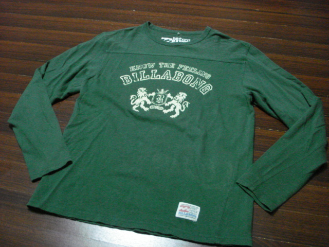 > 送料無料☆billa bongデカロゴ長袖Tシャツ/ビラボン/メンズ/L/緑/ロンT