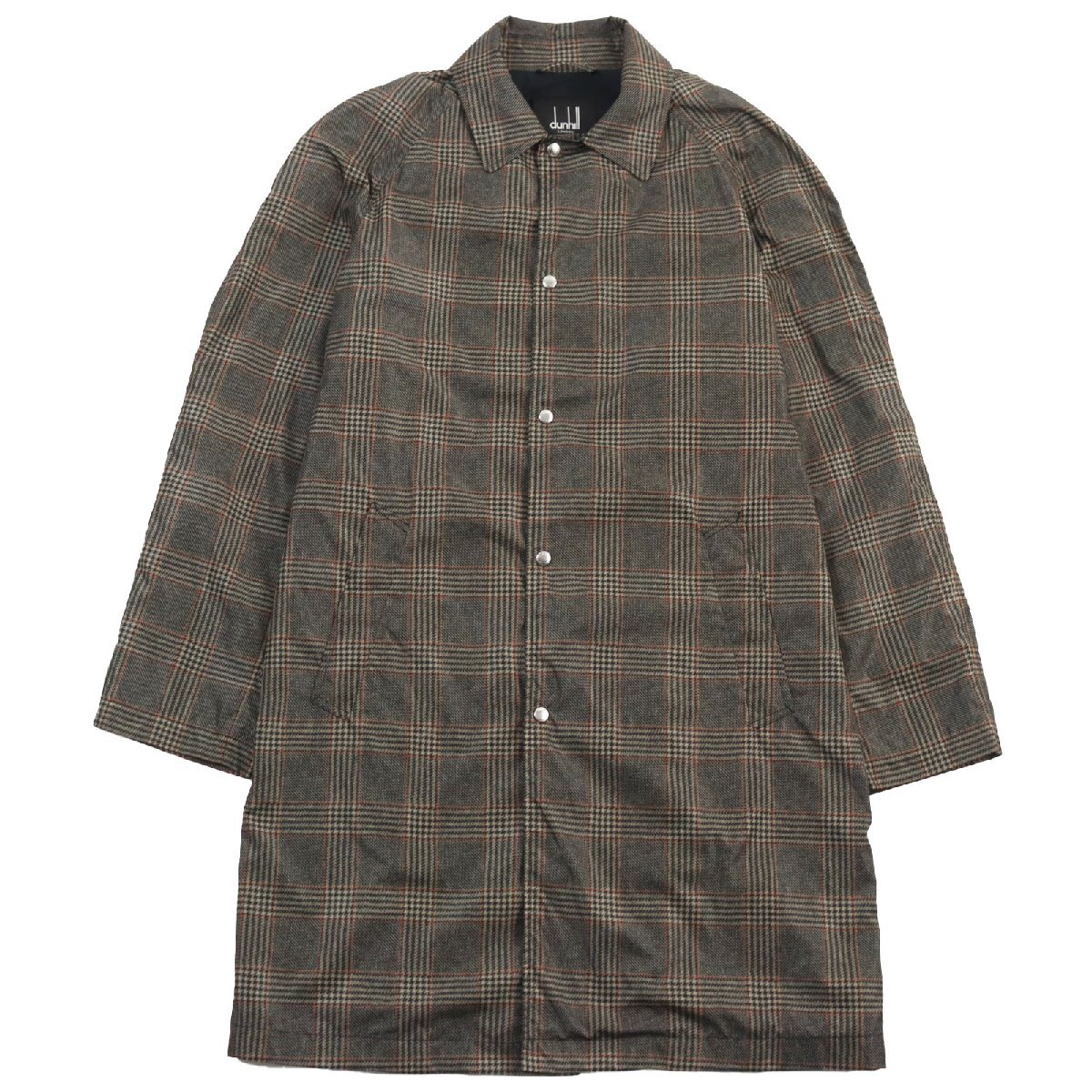 > 極美品●Dunhill ダンヒル グレンチェック柄 ラグランスリーブ ナイロンコート ステンカラーコート ブラウン系 M 正規品 メンズ