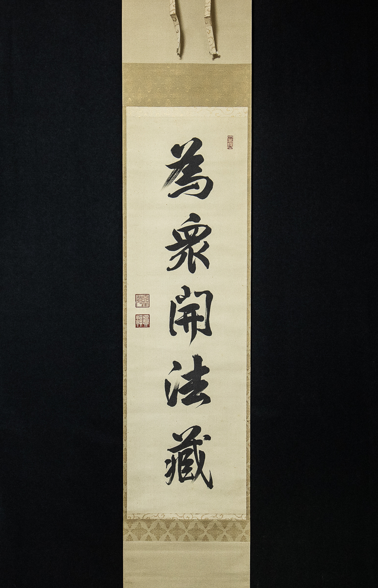 - 【真作】 華園真淳 「為衆開法蔵」 1行書 二重箱 本山内事局書付あり 浄土真宗興正寺派 御門主