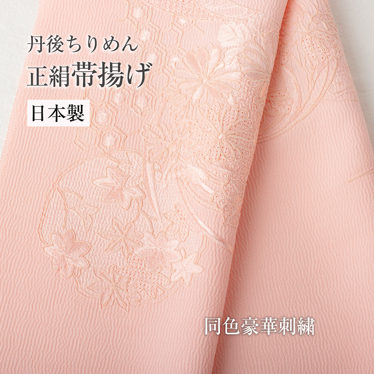 - 【正絹帯揚げ】楊柳地 豪華刺繍 NO.3654 正絹 丹後ちりめん 礼装〜普段着