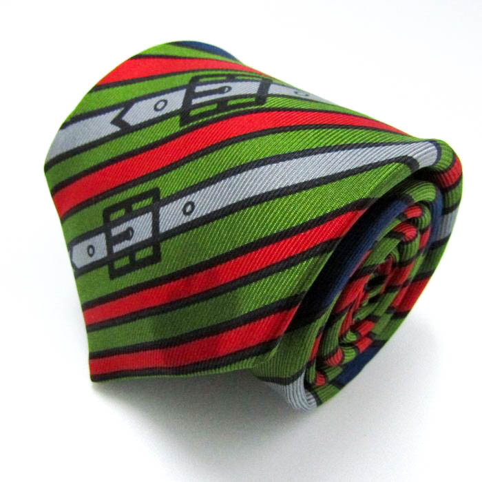 > ロベルタ・ディ・カメリーノ ブランド ネクタイ ストライプ柄 ベルト柄 シルク PO メンズ グリーン Roberta di Camerino