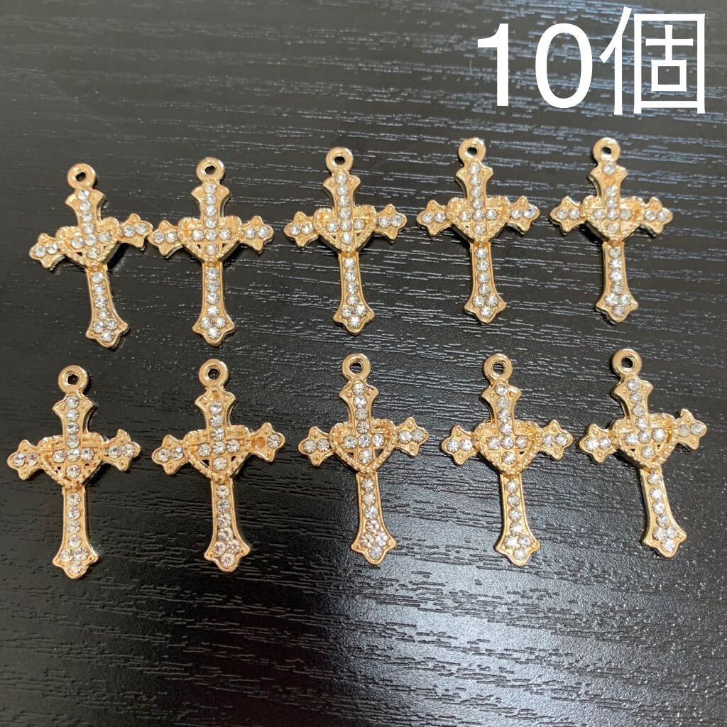 - ラインストーン 十字架 クロス ゴールド ペンダント トップ チャーム 10個