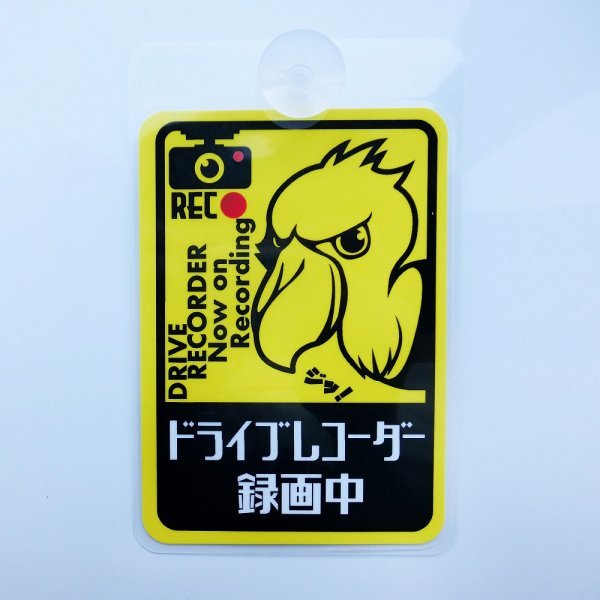- ハシビロコウイラストのドライブレコーダー搭載車 プレート 吸盤内貼りタイプ