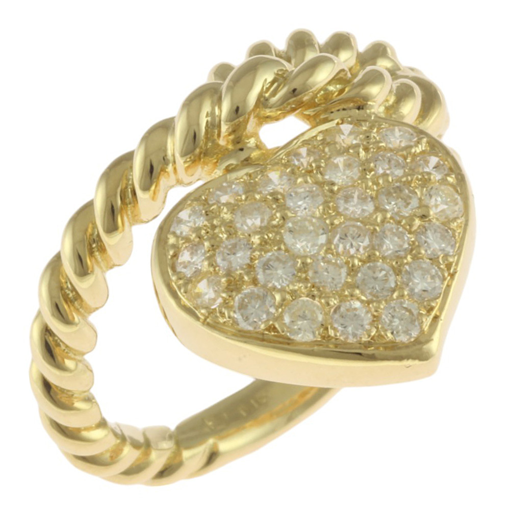 > ハート リング 指輪 10号 18金 K18イエローゴールド ダイヤモンド 0.53ct レディース 中古 美品
