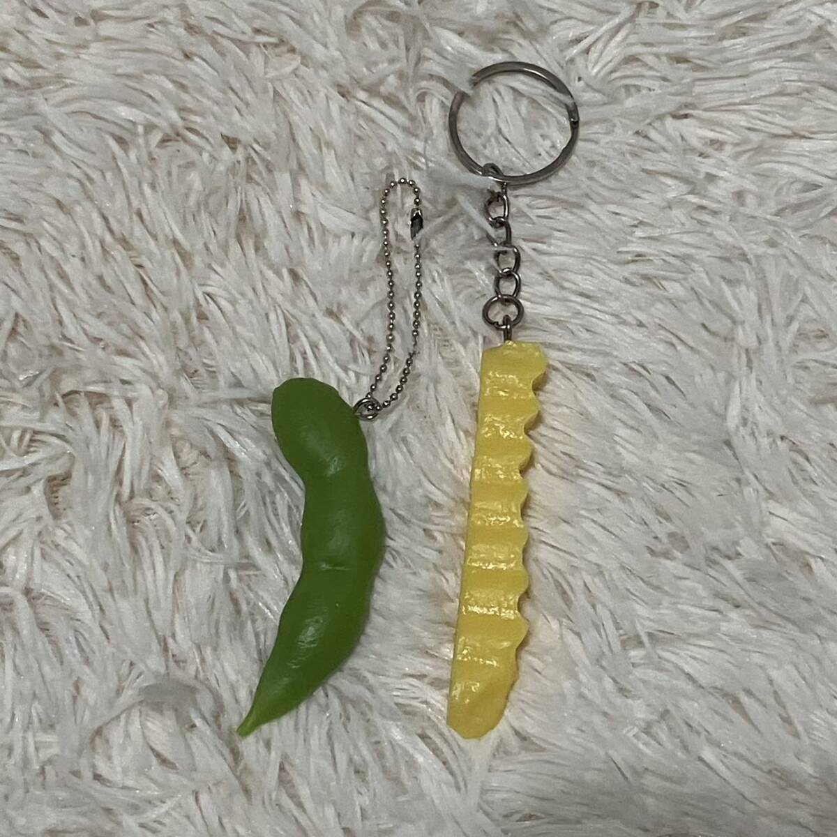 - フライドポテト 枝豆 キーホルダー フレンチポテト えだまめ 食品サンプル ミニチュア リアル セット アミューズメント 景品 plastics food