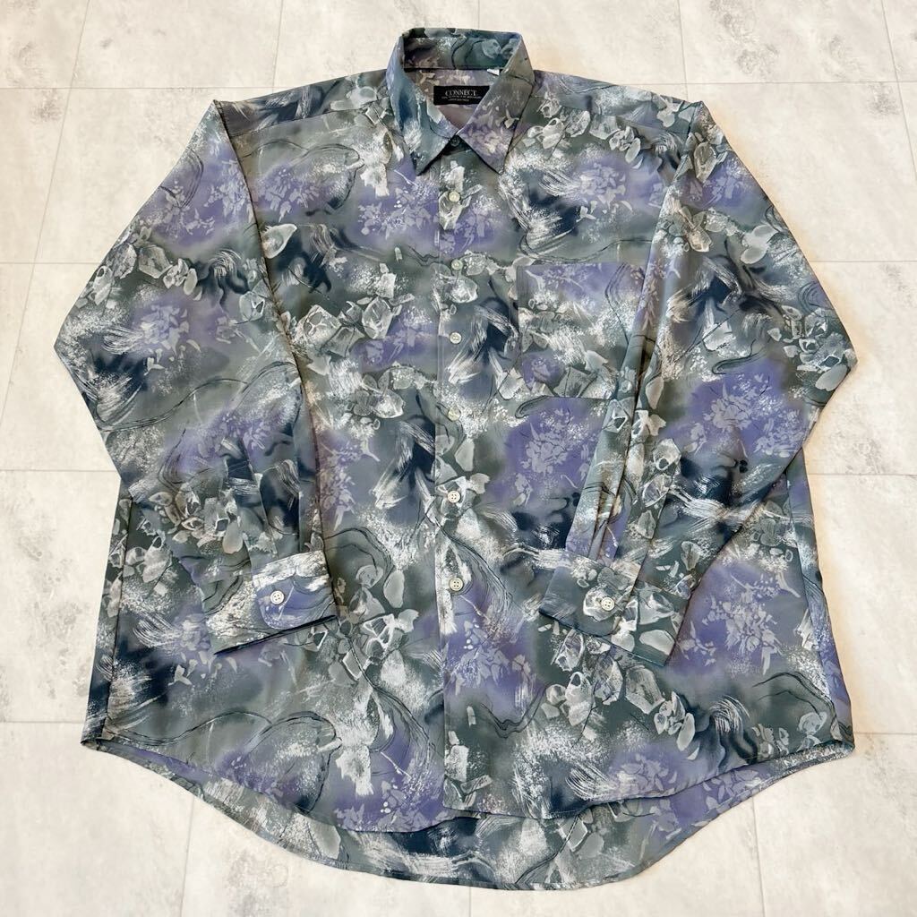 > CONNECT 総柄 柄シャツ レトロ アート ビンテージ 長袖シャツ ポリエステル100% size2L