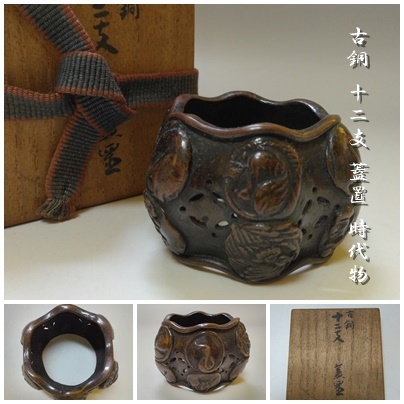 - 【T-242】古銅 十二支 蓋置 茶道具 時代物